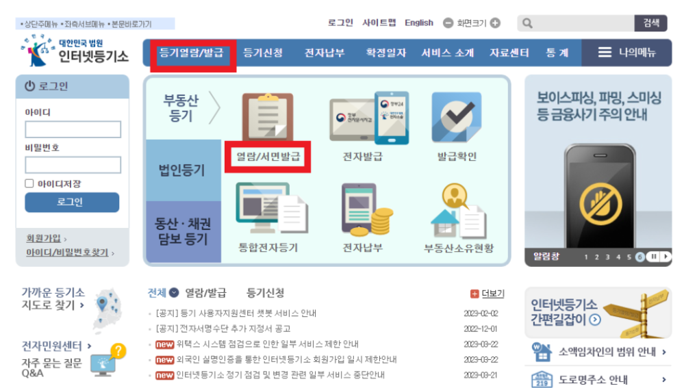"인터넷 등기소(https://www.iros.go.kr )"에서 직접 해당 집의 등기부등본을 열람해 보세요.
